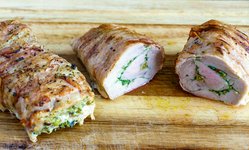 Schweinefilet gefüllt mit Bärlauch-Pesto, Zitronen-Minze-Joghurt und Kartoffeln