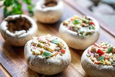 Jetzt mit der fertigen Masse die Champignon großzügig füllen.